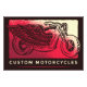 Cool design featuring a motorcycle with wings and "Custom Motorcycles" caption.