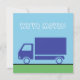 At the top, you can edit the text that currently reads 'We've Moved' in large white letters that appear to be clouds on a blue sky. Below that is a moving truck on which you can personalize your moving announcement with your name and new address also in white text on a dark blue truck.