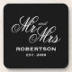 Custom Mr and Mrs name plastic beverage coaster. Add your own surname and established date of marriage. Elegant design with stylish script typography. Black and white or custom color. Cork backing. Great for home, wedding party, dinner etc. Classy bridal shower gifts for newlyweds, just married couple, bride and groom etc.