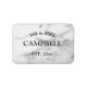 Custom mr and mrs white stone marble bathroom bath mat. Modern black and white non slip bathmat for bath room. Microdry shower / bath rug with personalized family name / surname. Trendy home decor accessory. Personalizable with monogram or quote. Unique housewarming gift idea for new home. Stylish chic interior decoration for elegant wet room. Available in small, medium and big extra large size. Customizable template and background colour. Also nice for beach home, spa business, hotel, resort, tanning salon or beauty salon. Luxurious wedding gift idea for mr and mrs couple, newly weds, bride and groom, husband and wife, etc. Include established date of marriage.