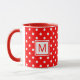 Fun whimsical polkadots pattern on bright vibrant red background. With room to customize or personalize with monogram or initials of your choice. Trendy and funky hipster design for the vintage retro style or abstract geometric motif lover.