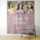 Happy Birthday! Custom Photo Booth or Party Wall Backdrop as birthday party wall decor! Space for 3 photos of the birthday girl, and easily customize the modern typography design with your name, message, and birth date. This layout features printed gold confetti sparkles over a blush pink background.