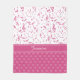 A sweet and girly musical design featuring a pattern of pink music notes on white with an accent of light pink love hearts on pink at the bottom of the design. Customizable text for the name in a lovely cursive script font.