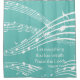 Elegant teal Christian Scripture shower curtain, designed with musical notes. There is customizable text that says LET EVERYTHING THAT HAS BREATH PRAISE THE LORD, which is based on Psalm 150 and which you can personalize to suit your requirements. Available in other colours.