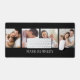 Modern photo collage desk mat personalized with name and 4 favorite pictures. Makes a unique personalized office gift.