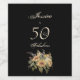50 & Fabulous Birthday Elegant Wine Label. Trendy. Custom. Name. Sunflower Bouquet. Black.