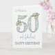 A pretty 50th birthday card for you to customize with the name of the recipient. The large number 50 is filled with a Dog Rose pattern, outlined in soft gray/green and there are two sprays of pink Dog Roses decorating the numbers. The background is a very light green polka dot pattern on white and the front cover greeting is, '50 and fabulous! HAPPY BIRTHDAY', with plenty of room at the top for you to add the name of the recipient. You can also easily customize the inside message.