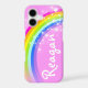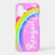 Help protect your child's iphone from knocks and kiddy accidents, with this pretty rainbow design girls iphone 5 case. Personalise with your childs name up to 6 letters, perfect short names or nicknames. This example reads" Reagan". (***Please note some names will not always fit due to the nature of the font. You can find more rainbow cases here or contact me and I can post another to meet your name and colour needs). Exclusively designed and illustrated by Sarah Trett. www.sarahtrett.com