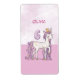 A sweet pink pony just that girl is prancing with the number six! Gold looking details are woven in her mane and tail. Perfect gift, souvenir, giveaway or party essential to wish her happy 6th birthday! Personalize this with her name. (Digitally rendered golden looking colour)