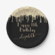 Custom Name + Age Black and Gold Dripping Glitter Paper Plate
