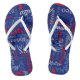 Fun graphic text name printed all over flip flops in red, grey and blue text on a dark rich blue background colour which can be changed if required. Make sure no one mistakes your flip flops with theirs, with this unique printed all-over script and plain graphic random patterned name design. Other matching items are available. Designed by www.mylittleeden.com