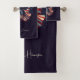 It was advertised as NAVY blue and the color sent was greenish blue. I am disappointed in this product. Quality and printing are great as are all my other orders. As you can see in picture the tea towel on right is perfect, hand towel not so much! Print was awesome and just as ordered