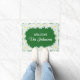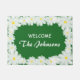 Custom name and colour daisy flower floral small door mat. Make your own custom monogrammed indoor / outdoor doormat with custom background colour and text. Add your own welcome message, family name, surname, initial letter or funny quote. Cute gift idea for new home / housewarming, wedding venue, store, shop, company office, business etc. Stylish script typography. Personalizable template. Create your own classy floral entry mat / rug for front door / entryway or hall. Customizable home decor / decorations for your chic house. Cute gift idea for couple or newly weds. Inspired by nature.