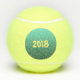 Simple but personal design with printed text on a teal green dot on 2 sides of each ball. By default a name is on one side and a year on the other side. Colour of text is same as colour of ball, making it look like a cut-out..