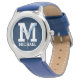 Custom Name and Monogrammed Bold Typography Blue Watch