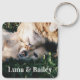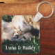 This adorable pet keychain features your favourite photo of your pets with their names written below in a classic, simple white type. The perfect keepsake for cat and dog owners!