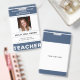 Simple personalized teacher id card - identification navy blue badge with your custom photo, name, title, and other details. +++++++++++++ Easy to customize on both sides! +++++++++++++++ Suitable for school, college, university teachers, tutors and other employees.
