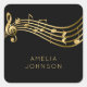 Custom Name Back&Gold Music Notes Square Sticker