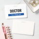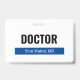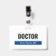 Custom name badge with clip for medical doctor MD. Modern typography template design. Add your own name, job title, work function, etc. Personalized name tags for doctors, physician, specialist, general practitioner, RN nurse, medical personnel, hospital staff, healthcare workers, paramedic, company employees, volunteers, coworkers, colleagues, rescue workers, emergency responders, teachers, nurses, business managers, care home guests, visitors, clients, nursing school students, vet clinic, CEO etc. Customizable colors and lettering. Basic layout with simple easy to read letters. Change quantity to get the cheap bulk price. Blue or custom color.