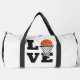 I actually had been searching other sites for a duffle gym bag and I couldn't find any. This one is just what I was looking for with all the features. The inside zip pocket, the outside mesh pocket and LOTS of room inside. Love the printing. Really like how the floral print turned out.