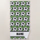 Custom name beach towel with soccer ball print. Cool Birthday gift idea for soccer player, kids, mom, dad, friend, team, league etc. Sports presents for boys and girls. Add your own personalized name, monogram or quote.