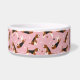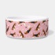 Cute beagle dogs with pawprints and dog bones on a pink background dog bowl with your own custom pet name.