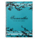 Custom Name Black and Turquoise Floral Notebook
