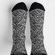 Personalized zebra print socks. Classic black and white zebra pattern styled and customized with a personal name printed in elegant white print. Choose between the two options are crew socks and high performance socks to fit your style and needs.