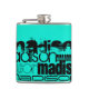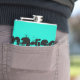 Custom Name; Black & Neon Aqua Turquoise Hip Flask