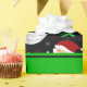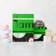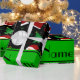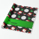 Modern and trendy Custom name sports black volleyball balls, santa claus, green christmas trees, red, green and yellow stars, white snowflakes, snow, red santa hats pattern background and green stripe personalized with just add your name gifts or monogram gifts or your initials for a unique gift. Sports gift ideas for men and boys and girls. Ideal for christmas presents.