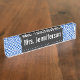 This desk nameplate design features a pattern involving many blue dots/circles. It also features a personalized name in white coloured text within a dark coloured area. It could perhaps be used on the desk of a teacher, educator, professor, doctor, lawyer, or some other professional. [~Z0000047]