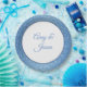 Party paper plate shown in a lovely Blue fine glitter print around the rim and White centre. Your personalized name in a fancy script in centre.