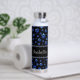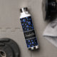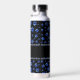 Custom name, blue glitter dog paws water bottle
