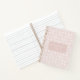 Elegant blush rose notebook featuring a white vector pattern repeated on a clean blush rose background, complete with a customizable name and title on the cover. Perfect for journaling, school notes, planning, or gifting someone a beautifully personalized stationery piece.