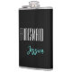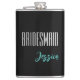 Flask for the bridesmaid is shown in black with teal and white text and has a sample name.