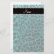 Modern,chic and trendy personalized custom name bright aqua glitter leopard spots pattern (animal print) with a beautiful black diamonds stripe (not real diamonds) with hearts and dots personalized with your name gifts or monogram gifts or your initials. Pretty girly leopard print gift ideas.