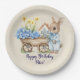 Custom Name Bunny with Blue Flowers Birthday Party Paper Plate