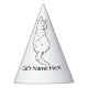 Personalized minimalist cat party hat featuring elegant black line art and your custom name. Perfect for cat birthday parties, pet celebrations, cat lover events, and modern animal-themed party decor.