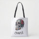 Customize with your name or phrase. Celebration of Life and Death tote. Dia de los Muertos: Day of the Dead. Decorated sugar skulls, calaveras. Traditional Mexican Halloween celebration. Colourful floral patterns in bold colours in a rich, vibrant image. You can TRANSFER this DESIGN on other Zazzle products and adjust it to fit most of the Zazzle items. You can click CUSTOMIZE FURTHER to add, delete or change text and font. Personalize it to create a unique and special gift for birthdays or any occasion.