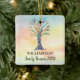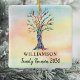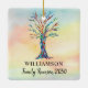 This Family Reunion Ornament is decorated with a mosaic family tree in the colours of the rainbow on a watercolor background.