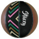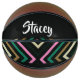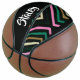 Custom name colourful stripes on black basketball