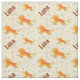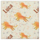 Cute cartoon lion print with a light dotted background personalized fabric for kids. Make a special gift, piece of clothing or a decorative item for a child, boy or girl, who loves wild animals, especially lions. Customize it by replacing the sample name with the one you want to see on the fabric. Light background with earthy gentle orange, yellow and brown tones.