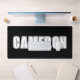Custom name desk mat for computer table or counter. Personalize with your own name, business name, logo etc. Black and white or custom colours. Modern template design with bold typography.