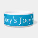 Dog bowl shown in white & blue with a dogs name,customize this item and change the name to your pets name.