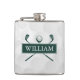 Custom Name Emerald Green Clubs And Ball Hip Flask