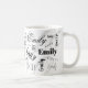 A custom name typography mug of the first name Emily in a variety of type styles that overlaps the initial in the background. Simple colours of contrasting black, white and grey. The name says it all. No one can take your coffee by accident.