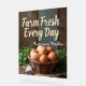Decorate your kitchen with this farmhouse eggs wall art print. Featuring rustic line art of eggs in a basket and the editable quote “Farm Fresh Every Day – [Name]’s Kitchen”, it makes a warm and inviting farmhouse-inspired wall décor piece. Perfect for kitchens, dining rooms, and rustic cafés.