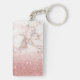 Custom Name Faux Rose Gold Glitter White Marble Keychain