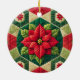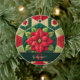 Custom Name Festive Floral Patchwork Poinsettia Ceramic Ornament