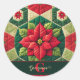 Custom Name Festive Floral Patchwork Poinsettia Classic Round Sticker